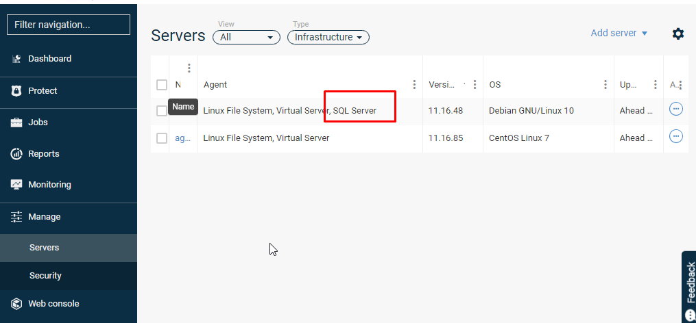 Po zainstalowaniu paczki z agentem MS SQL Server musimy przeprowadzić konfigurację klienta do ochrony bazy danych MS SQL. Klikamy w obiekt Windows File System na kliencie którego chcemy konfigurować