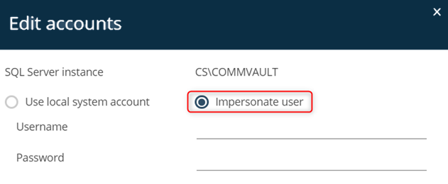 Wybieramy Impersonate user i podajemy dane użytkownika lokalnego lub domenowego (wymagania odnośnie konta podane są w dokumentacji Commvault: http://documentation.commvault.com/commvault/v11_sp13/article?p=18202.htm)
