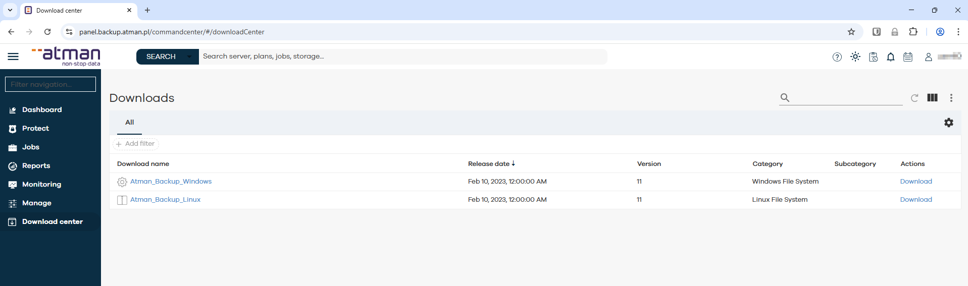 W przeglądarce internetowej należy wprowadzić adres https://panel.backup.atman.pl.