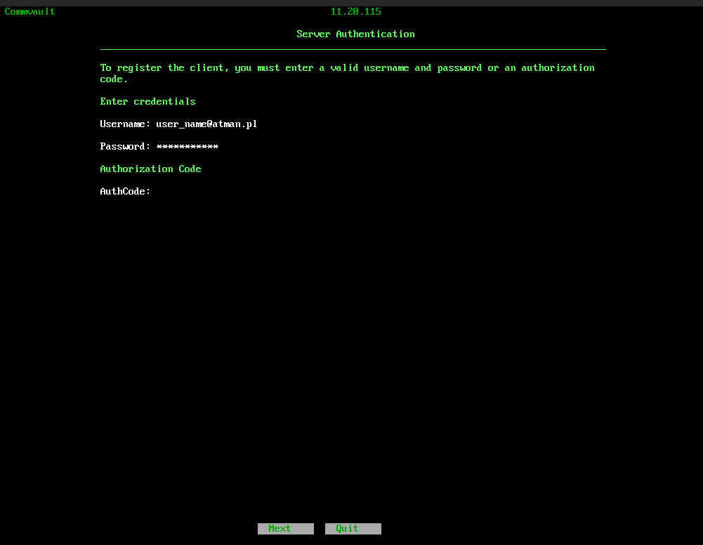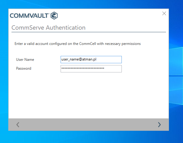 Podajemy dane użytkownika zarejestrowanego w usłudze Atman Backup.