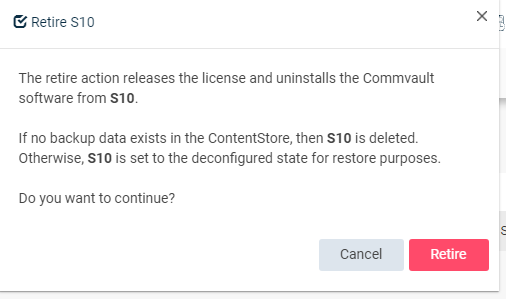 W menu maszyny, należy wybrać Retire, co spowoduje zwolnienie licencji dla maszyny: