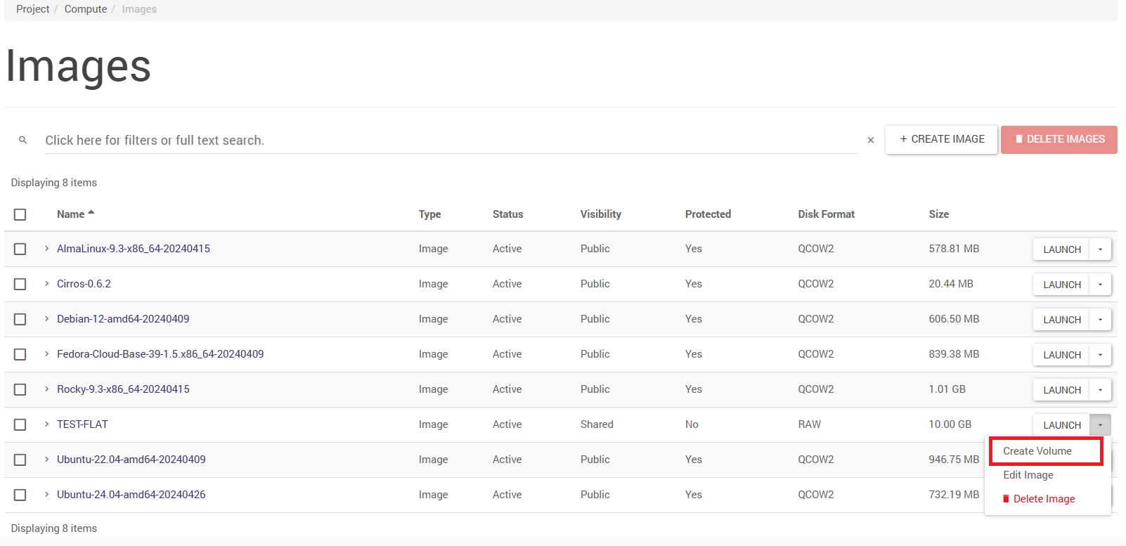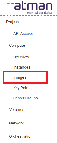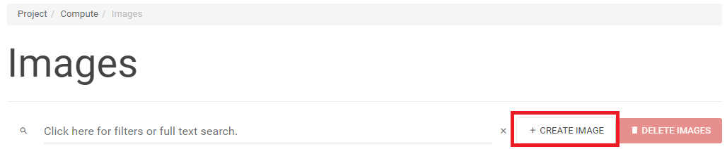 …by clicking on another tab in the menu and clicking again on the Project -> Compute -> Images tab: