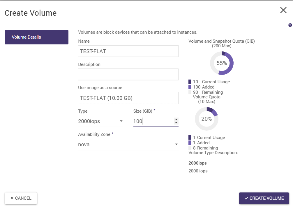 creation of a volume from an image