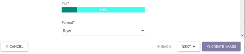 When uploading an image, a status bar will appear in the wizard showing the progress of the work: