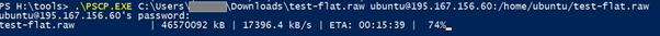The next step assumes that there is a Linux Ubuntu machine (IP:195.167.156.60) on the Atman Cloud with enough space to accommodate the image. The easiest way to copy is to use the scp command or its Windows equivalent of pscp (this tool is part of the standard Putty software package).