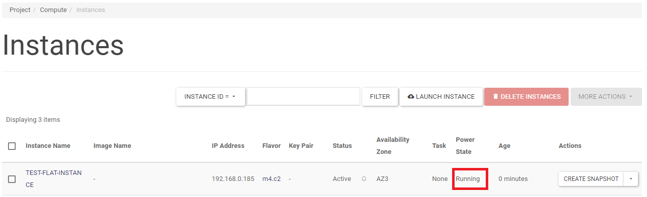 It can be observed that at the same time in the Horizon panel in the Project -> Compute -> Images tab, a new entry will appear in the list with the saving information: