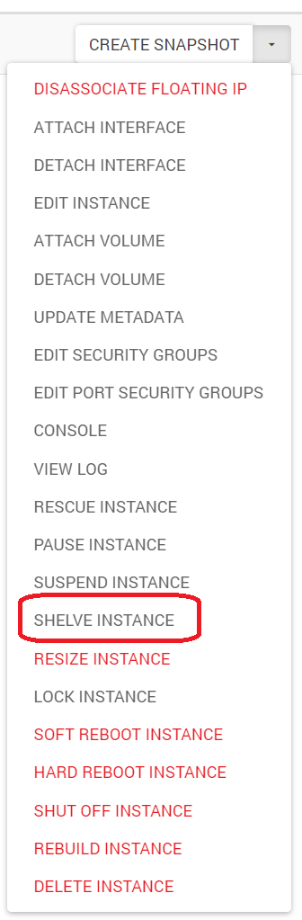 In the list of instances on the right-hand side of the Project -> Compute -> Instances screen, the user is able to perform a number of actions on their state. The following description shows the meaning of the states.