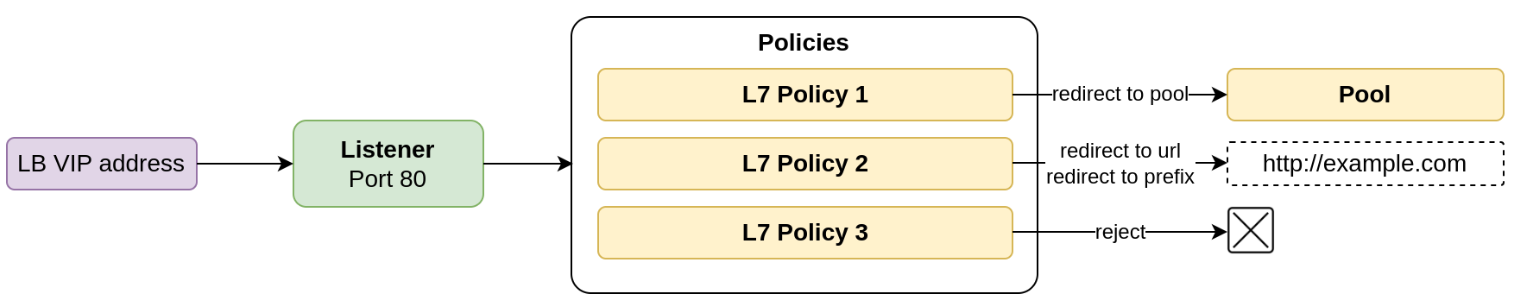 and, when certain rules are met, perform one of the actions (L7 policy type):
