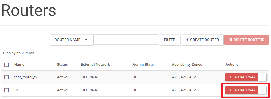 On the right-hand side in the Project -> Network -> Routers screen, in the list of activities select CLEAR GATEWAY