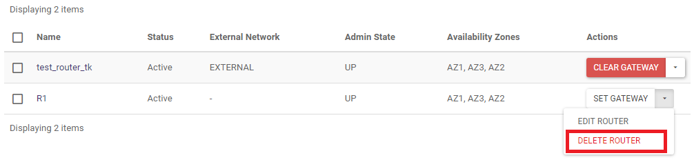 Select DELETE ROUTER from the list of actions.