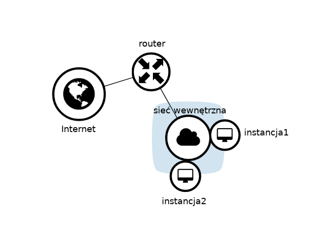 The diagram above shows a standard network diagram in a cloud environment. The two instances are connected to a single internal network, which in turn is connected to the Internet via a virtual router.