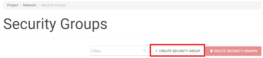 In the menu on the left-hand side of the Horizon panel under Project -> Network, click Security Groups and then run Create Security Group in the main part of the screen: