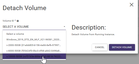 STEP 1. DETACH THE VOLUME FROM THE INSTANCE